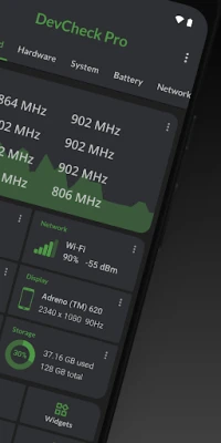 Monitor your hardware in real time and get complete information about your device model, CPU, GPU, memory, battery, camera, storage, network, sensors and operating system. DevCheck shows all the information you need about your hardware and operating system in a clear, accurate and organized way.