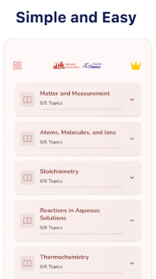 • Comprehensive Topic Coverage: Learn key concepts such as the periodic table, mole calculations, gas laws, and solution chemistry.