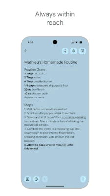• Manage your grocery list or plan your next trip by sharing your Keep notes with others and collaborating.