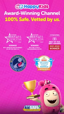 Join over 16 million parents who trust HappyKids for safe streaming for children of all ages! Dive into a treasure trove of 100,000+ free videos, featuring beloved family-friendly movies and shows like Cocomelon, Pokémon, Sesame Street, Blippi, Paw Patrol, Peppa Pig, LEGO, K-city Gaming, and more. With a variety of content designed for kids of all ages, there’s something here for everyone!