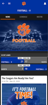 The NC Cougars App features: + Athletic Program and Team News Feeds + Scoreboard with Results and Upcoming Schedule + Score Updates and Push Notifications + Team Rosters and Schedules