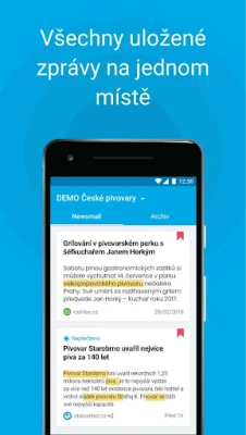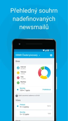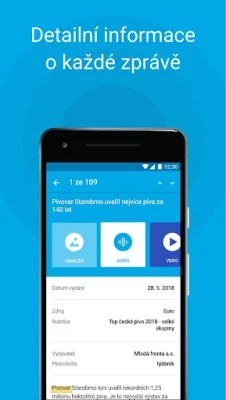 Výhody aplikace: Čtečka a archiv newsmailů, sdílení mediálních výstupů, upozornění na nový newsmail, online synchronizace, jediné přihlášení, uložení článků.