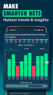 See if they’ve hit a bet over the last 5, 10 or 20 games with stats and visualizations