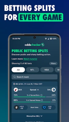 Looking for even more? Oddschecker+ gives you insights into public betting splits, showing you where the sharps and the casuals are placing their bets for the spread, moneyline and totals. Easily compare odds across multiple major sportsbooks like DraftKings and FanDuel to ensure you get the best prices.