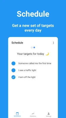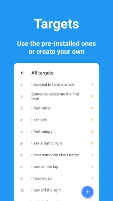 Several targets will be presented to you each day. Targets are events to focus on. For example, seeing a traffic light. Your task is at this time to remember and perform a certain ritual: common for everyone or unique. For example, flick your finger or think about your family. In the evening, return to the app and note what you've completed, then watch your progress. If the goal seems too easy or difficult, change its level. This will make it appear less frequently or less frequently, and you will develop your memory faster.