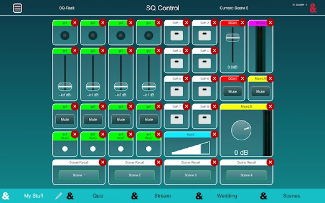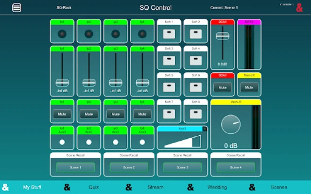 Typical applications include simple source selection to more complex venue audio management. SQ-Control can also be used to control send levels to a single mix for monitoring, recording or live streaming.