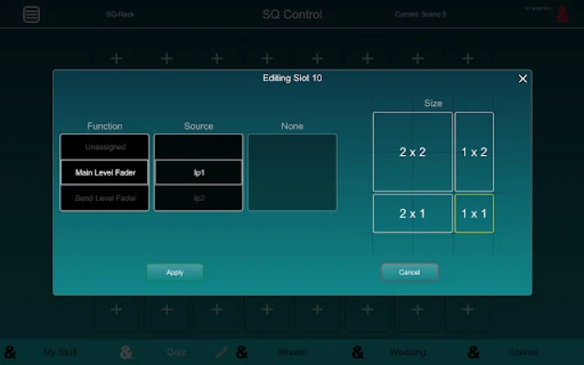 Complex set-up of routing, levels and processing are carried out within the mixing console or SQ-MixPad by an experienced user, then SQ-Control can be configured and used by non-technical users or when only a few parameters require adjustment.